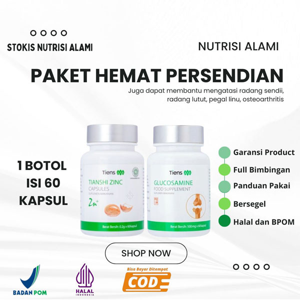Paket Hemat Nutrisi Persendian – Tianshi Glucosamine + Tianshi Jiang Zhi Tea + Tianshi Zinc Capsules – Nutrisi Persendian dan Lutut – Nutrisi Pegal Linu – Nutrisi Osteoarthritis dan Tulang Rawan